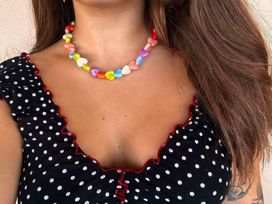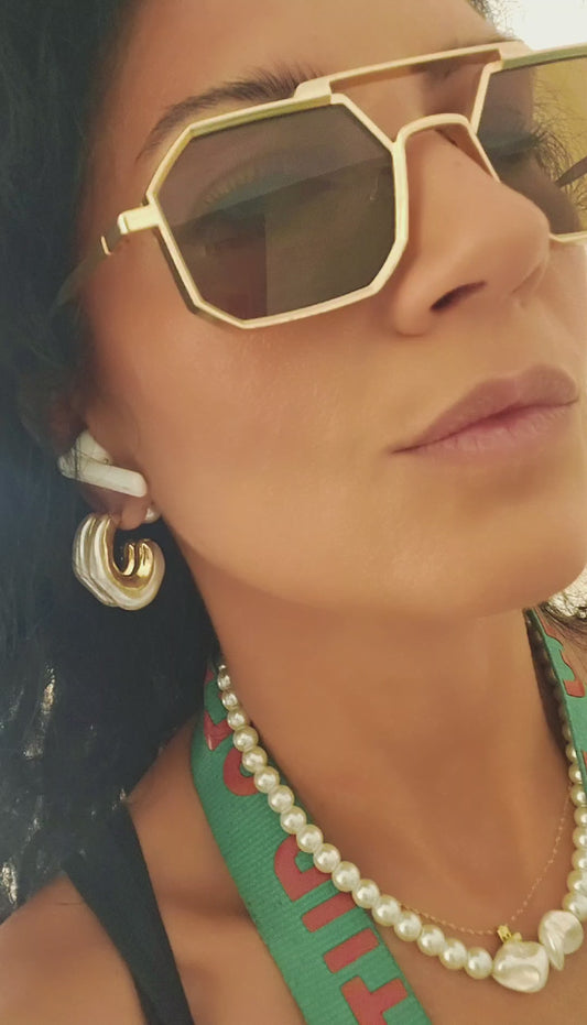 Caramel Crystals Glass Necklace with Gold Afro Lego plexiglass
