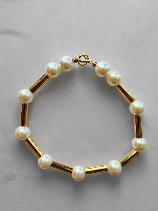 Handmade Hematite Bracelet with Pearl & Eye Charm