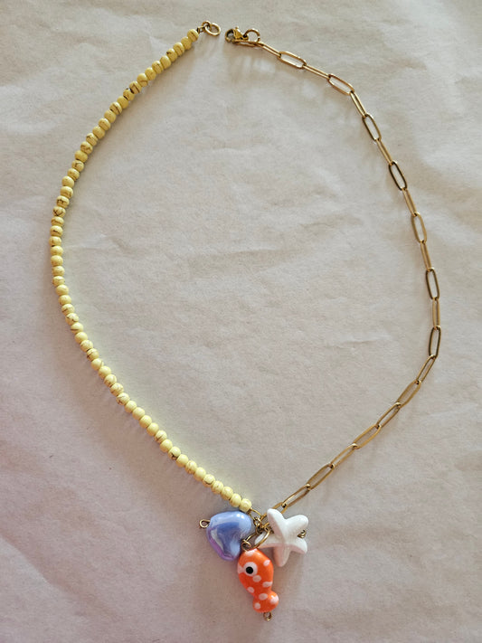 Long summer necklace with mermaid tail charm