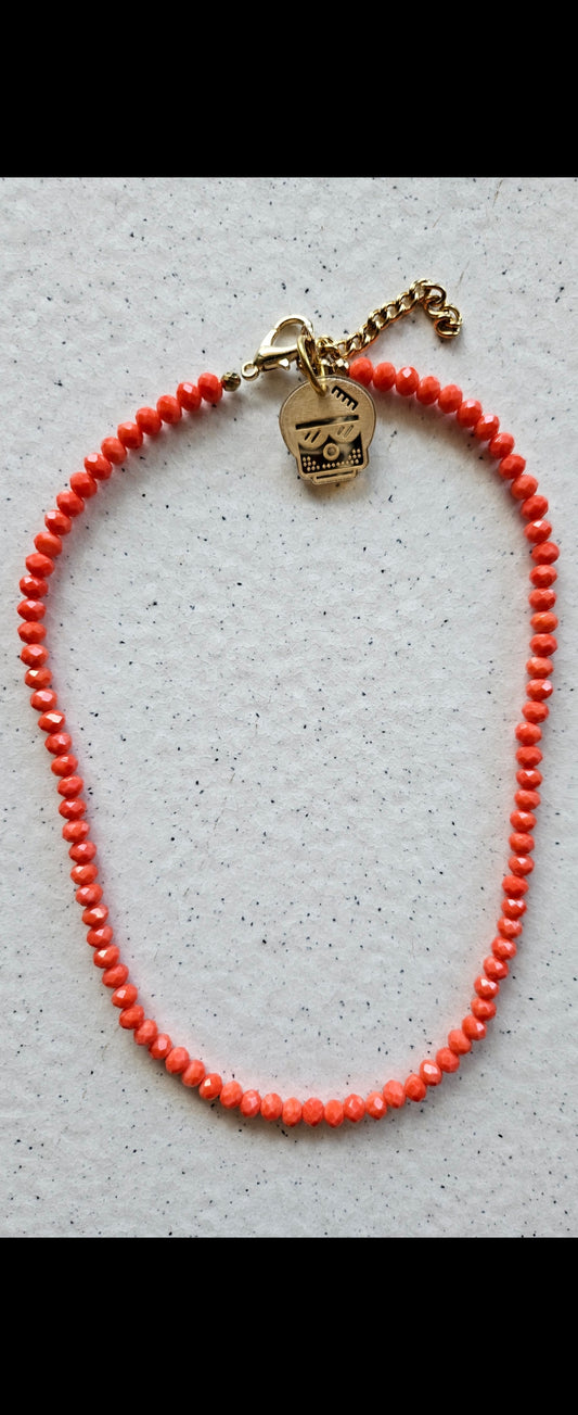 Coral Crystals Glass Necklace with Gold Afro Lego Plexiglass
