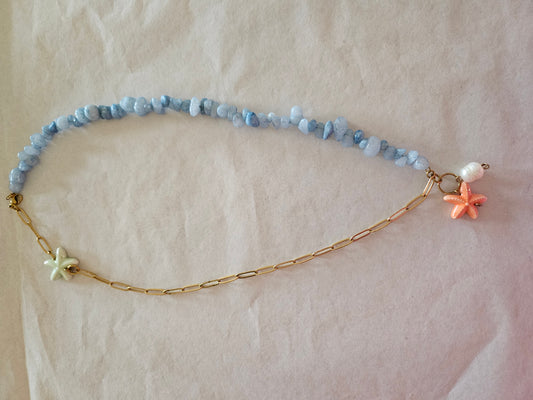 Coral Crystals Glass Necklace with Gold Afro Lego Plexiglass