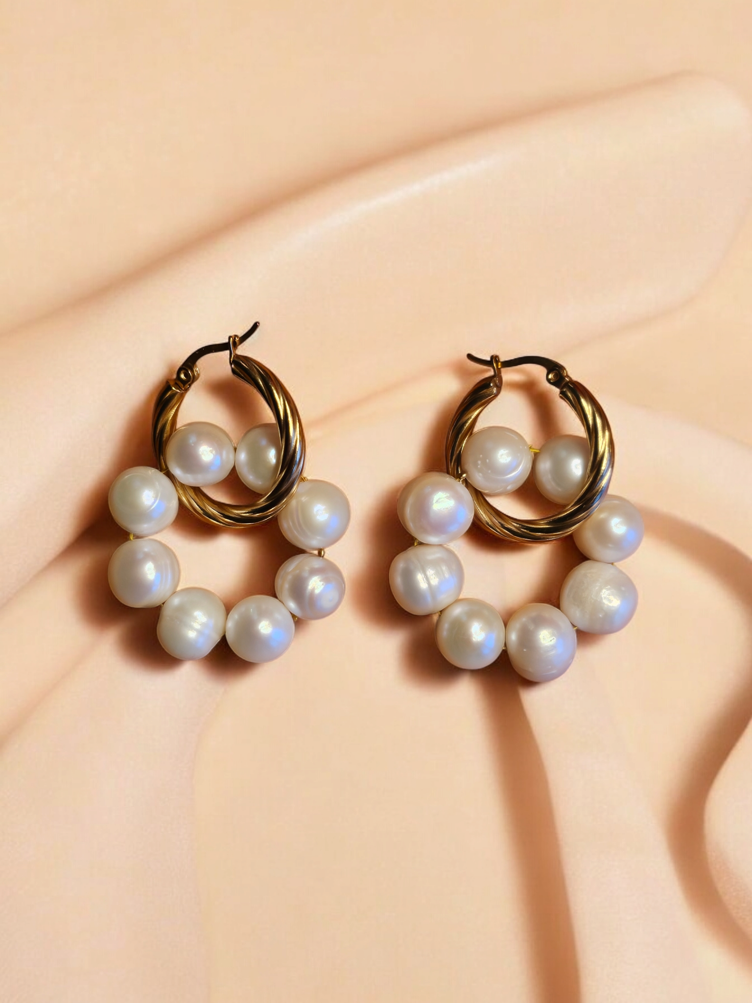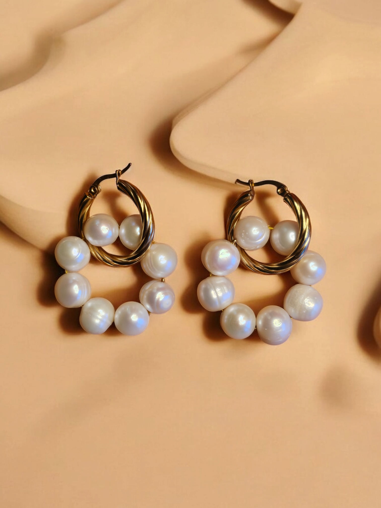 Κομψά σκουλαρίκια κρίκοι από ανοξείδωτο ατσάλι με μεγάλα μαργαριτάρια διαμέτρου 1 εκ. Κάντε την εμφάνισή σας με στυλ και κομψότητα.