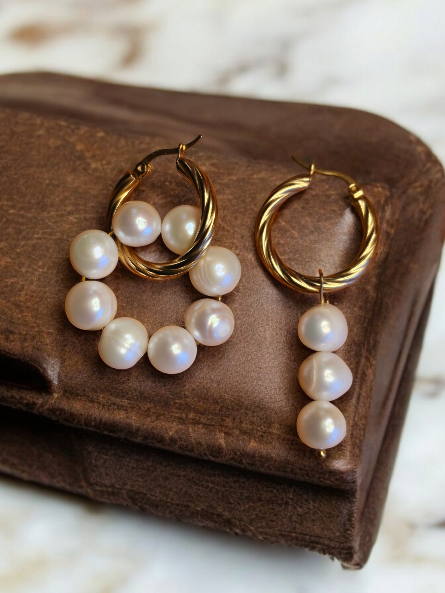 Κομψά σκουλαρίκια κρίκοι από ανοξείδωτο ατσάλι με μεγάλα μαργαριτάρια διαμέτρου 1 εκ. Κάντε την εμφάνισή σας με στυλ και κομψότητα.