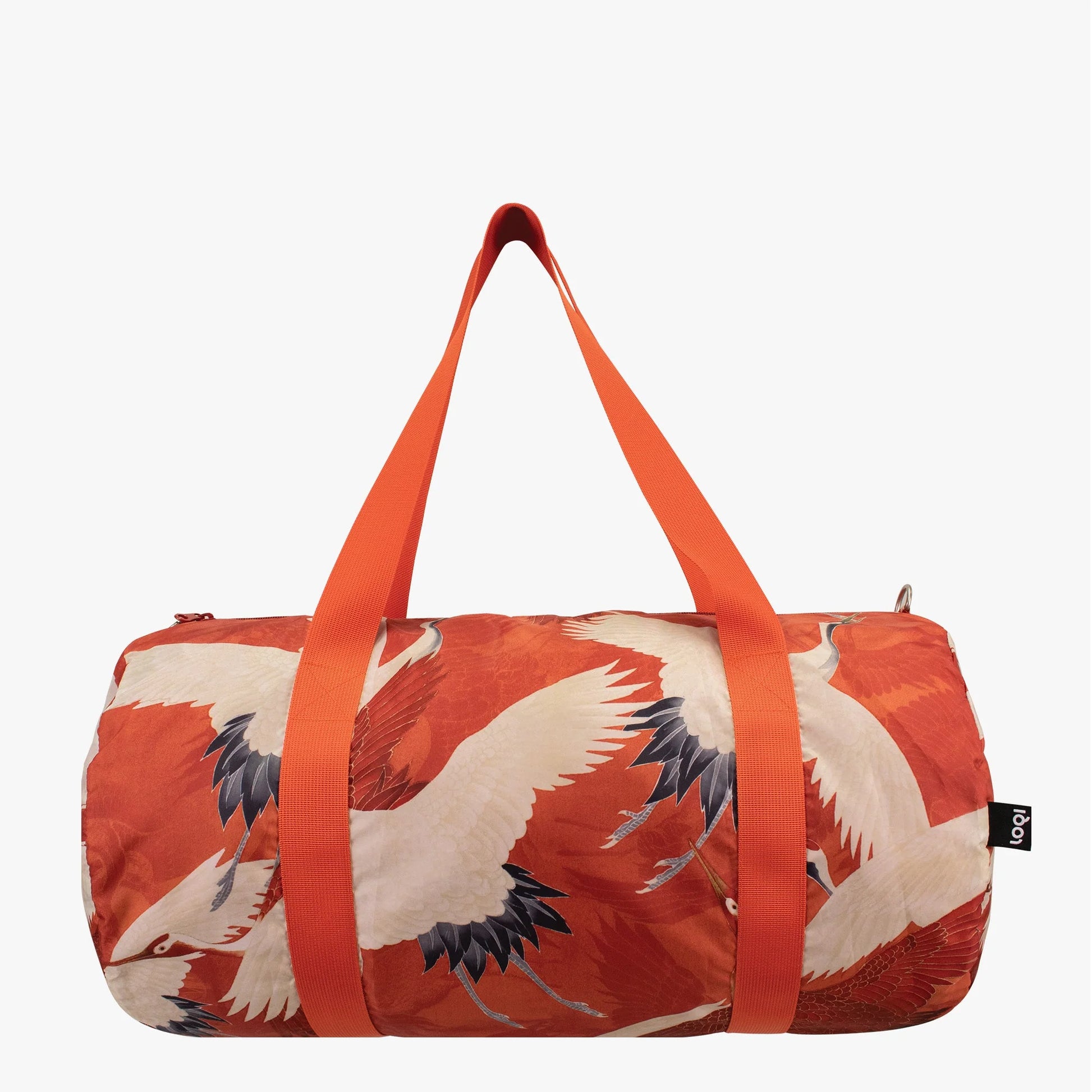 Flying Fugue. Fiery flight. Divine signs. A mystical moment. Play the game of one thousand cranes with this red-hot Japanese print on this recycled weekender bag