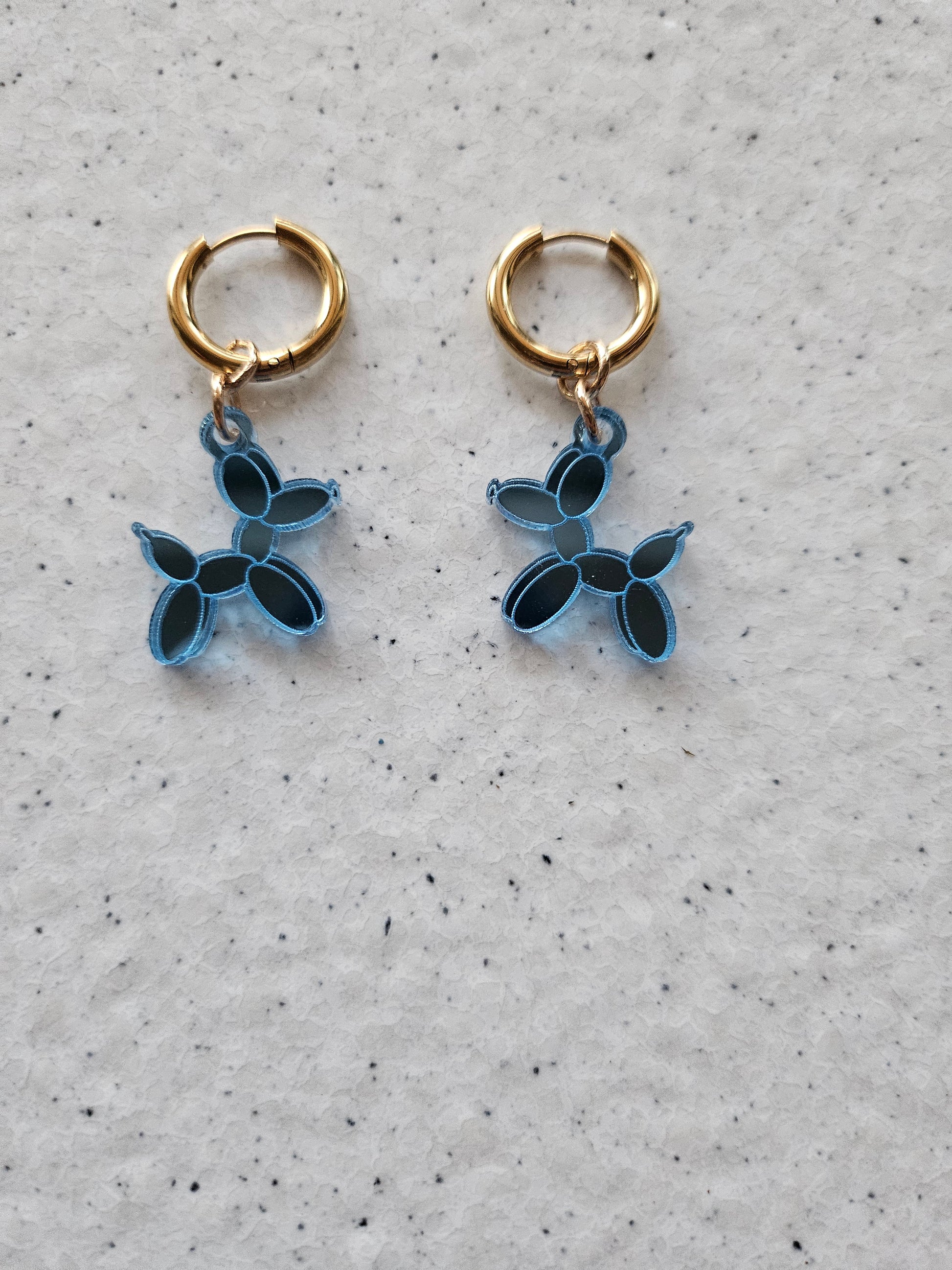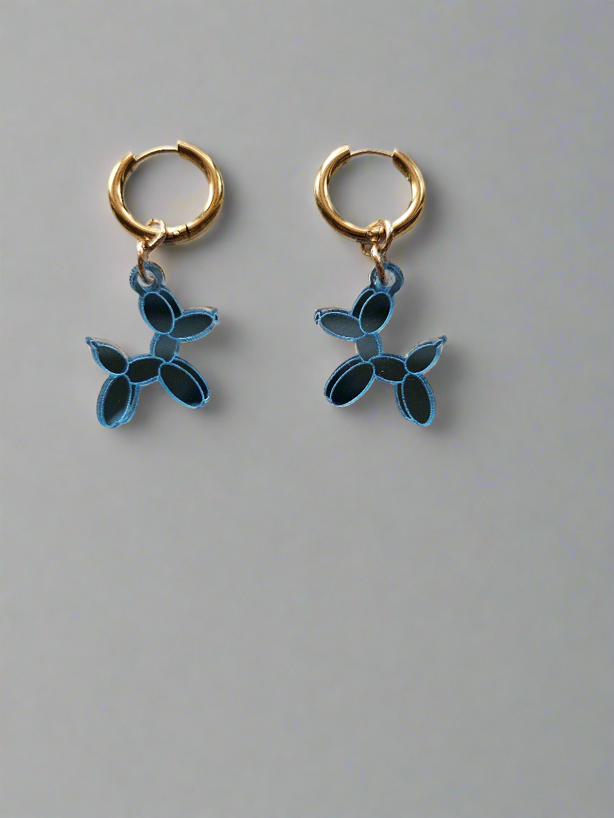 These playful dog balloon earrings are crafted from vibrant blue plexiglass, bringing a fun and unique twist to your style.