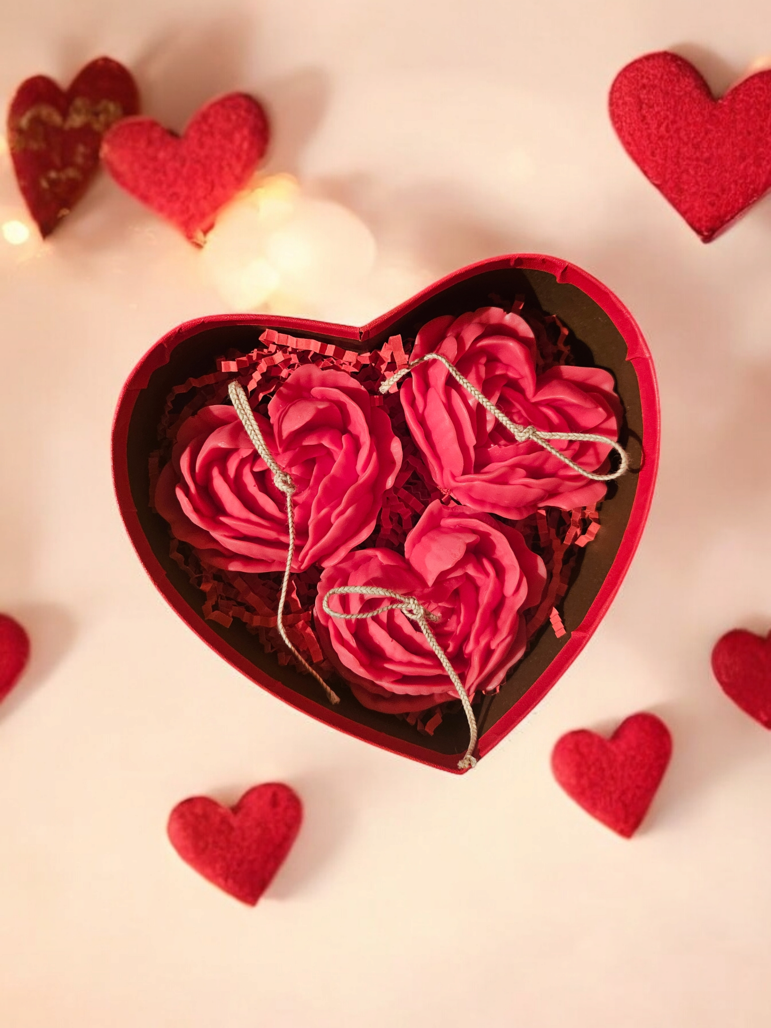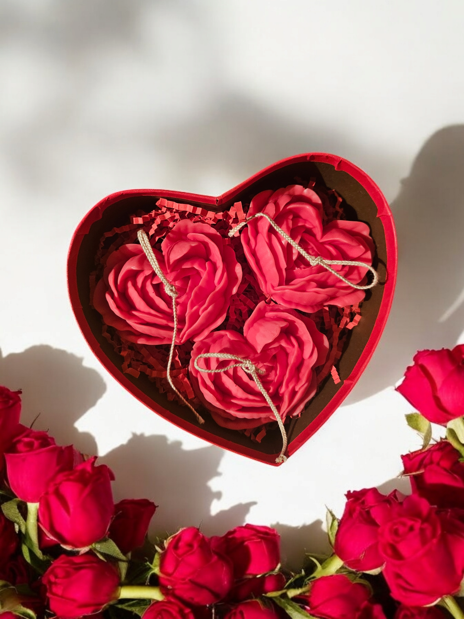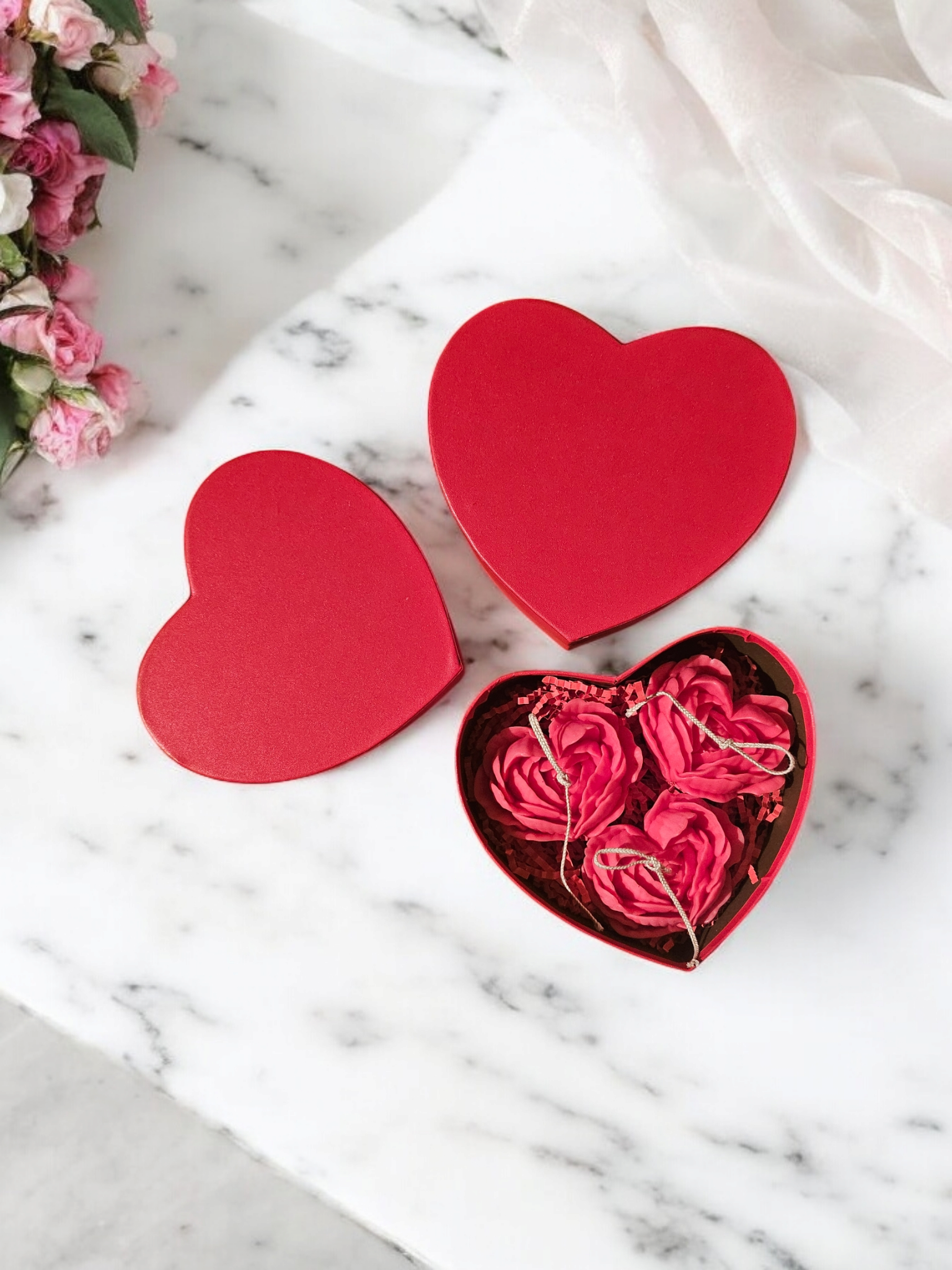 Celebrate love with this elegant set of three heart-shaped rose candles, infused with the indulgent Crème Brûlée scent. Perfectly crafted for Valentine’s Day, these candles come beautifully arranged in a red, heart-shaped box, making it an unforgettable gift or romantic centerpiece.