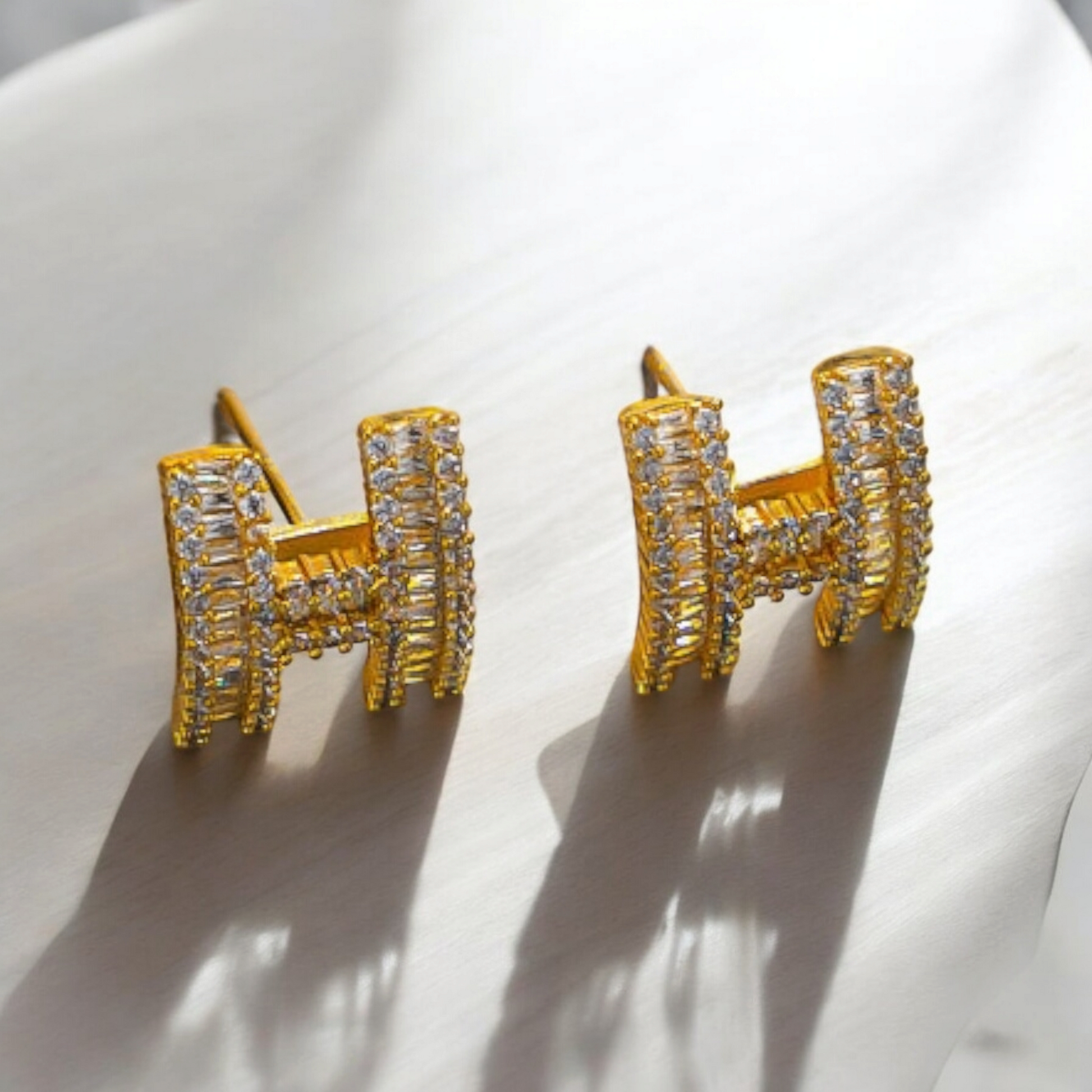 A chic "H" letter earrings adorned with sparkling zircon stones, set on a delicate chain. Perfect for adding a touch of elegance or gifting with a personal touch.