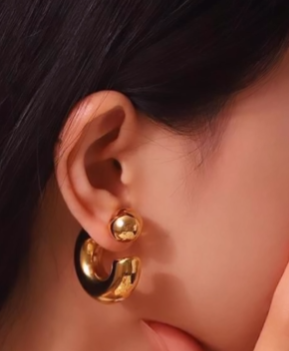 Elegant gold-plated steel hoop earrings featuring a secure round clasp. Perfect for adding a touch of sophistication to any outfit.