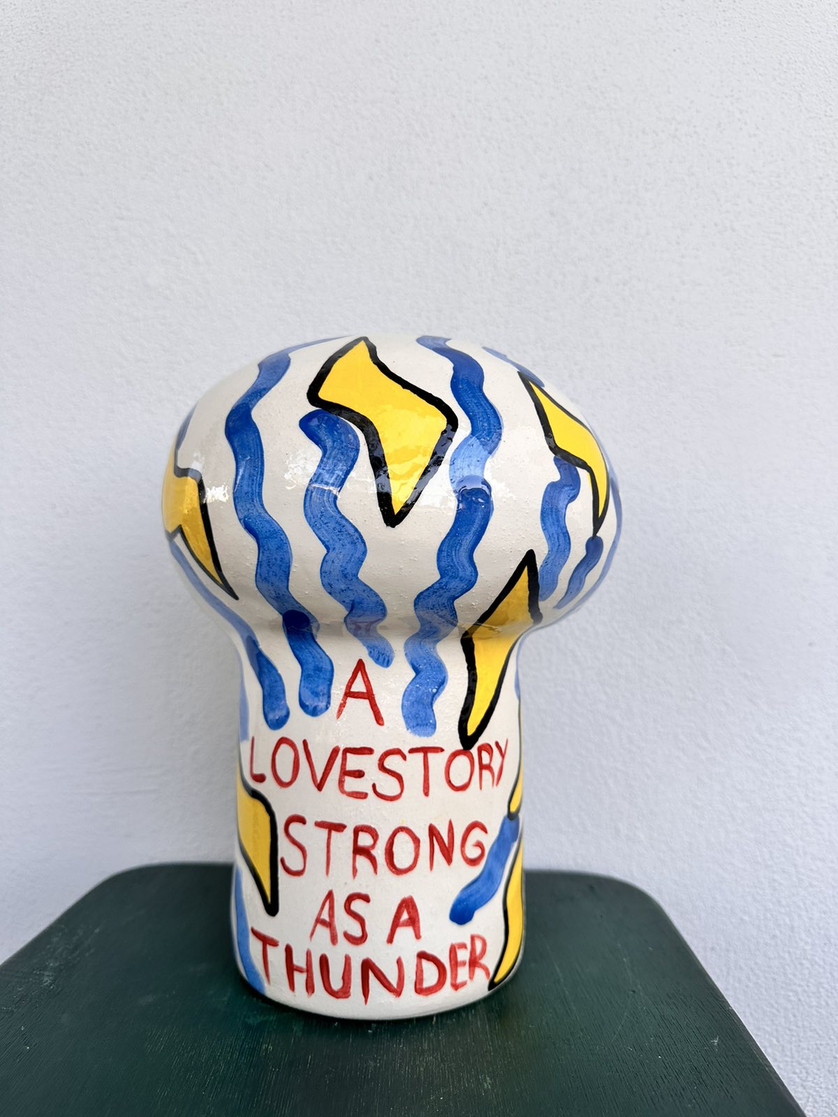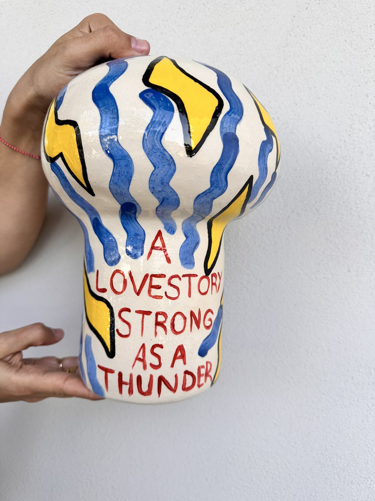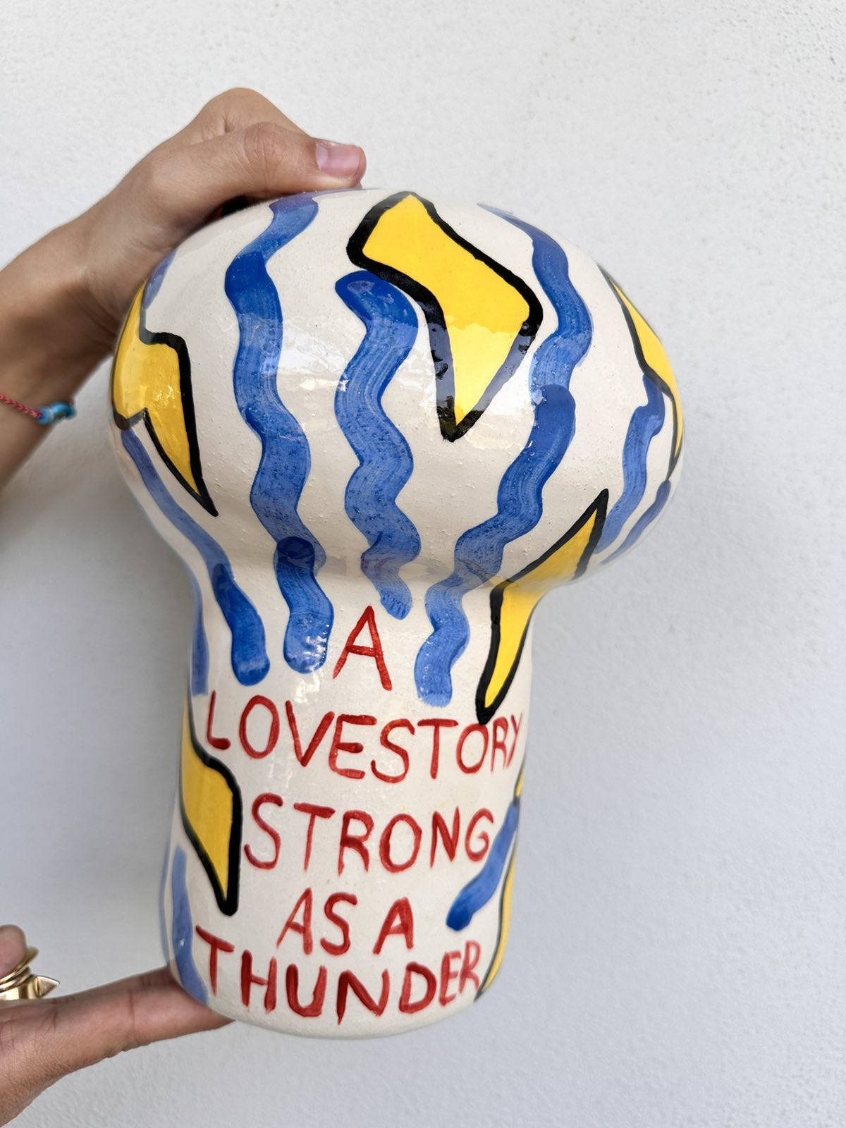 Introducing our striking ceramic vase featuring an electrifying design of thunderbolts. Handcrafted with meticulous attention to detail, this vase brings a dynamic and powerful presence to any space. Whether displayed as a standalone statement piece or filled with your favorite flowers, its bold imagery adds a touch of drama and energy to your home decor. Embrace the elemental force of nature with this stunning ceramic vase, sure to spark conversation and admiration.