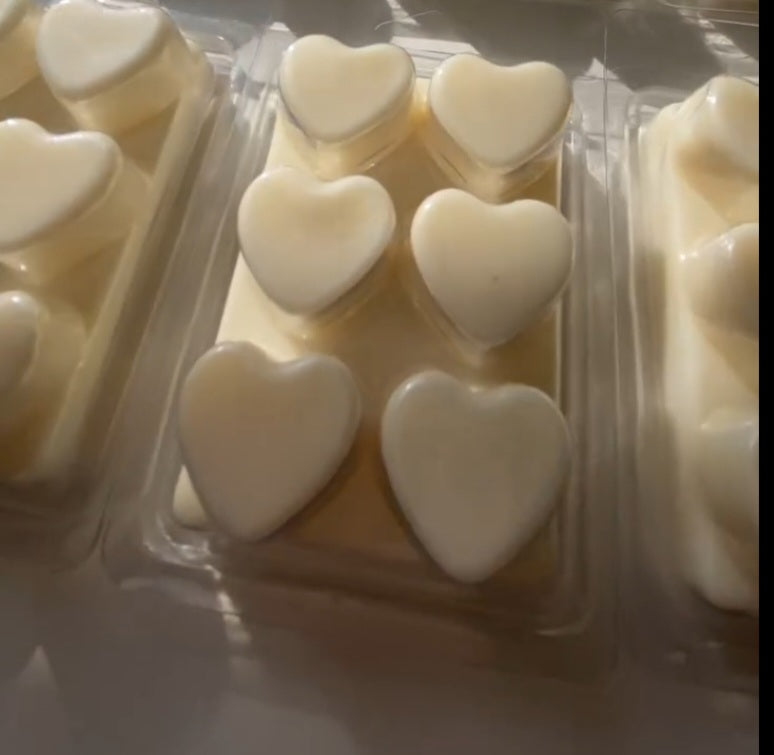 Six soy wax melts in the shape of hearts, available in your choice of wonderful scent.