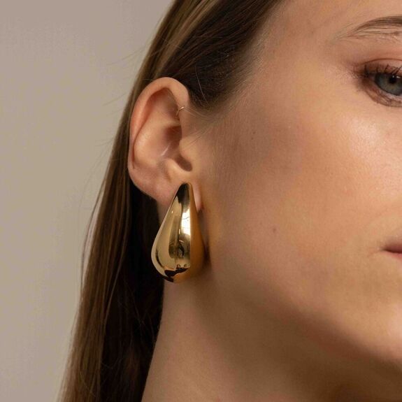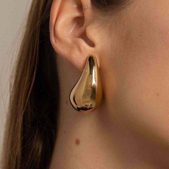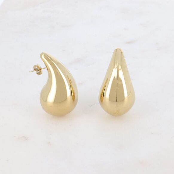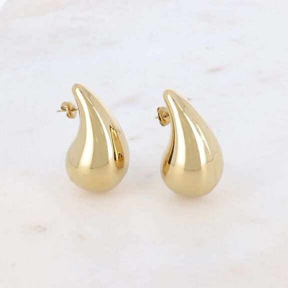 Stainless steel dangling earrings composed of a rounded drop shape hanging with fine borders.