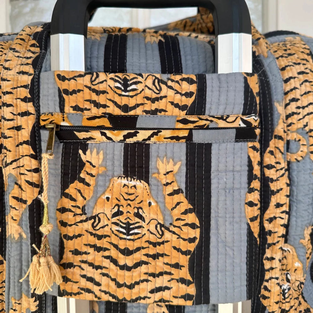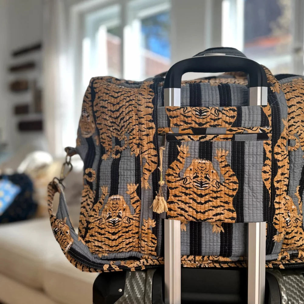 Large Travel Bag “Poppy Tiger Black” – Your Unique Carry-On Size Travel Bag in Hand-Printed Cotton