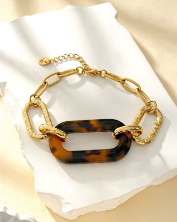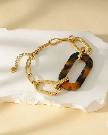 Gold Link and Acrylic Bracelet with Leopard Animal Motif. All our products are made of stainless steel, a material that resists water and time.