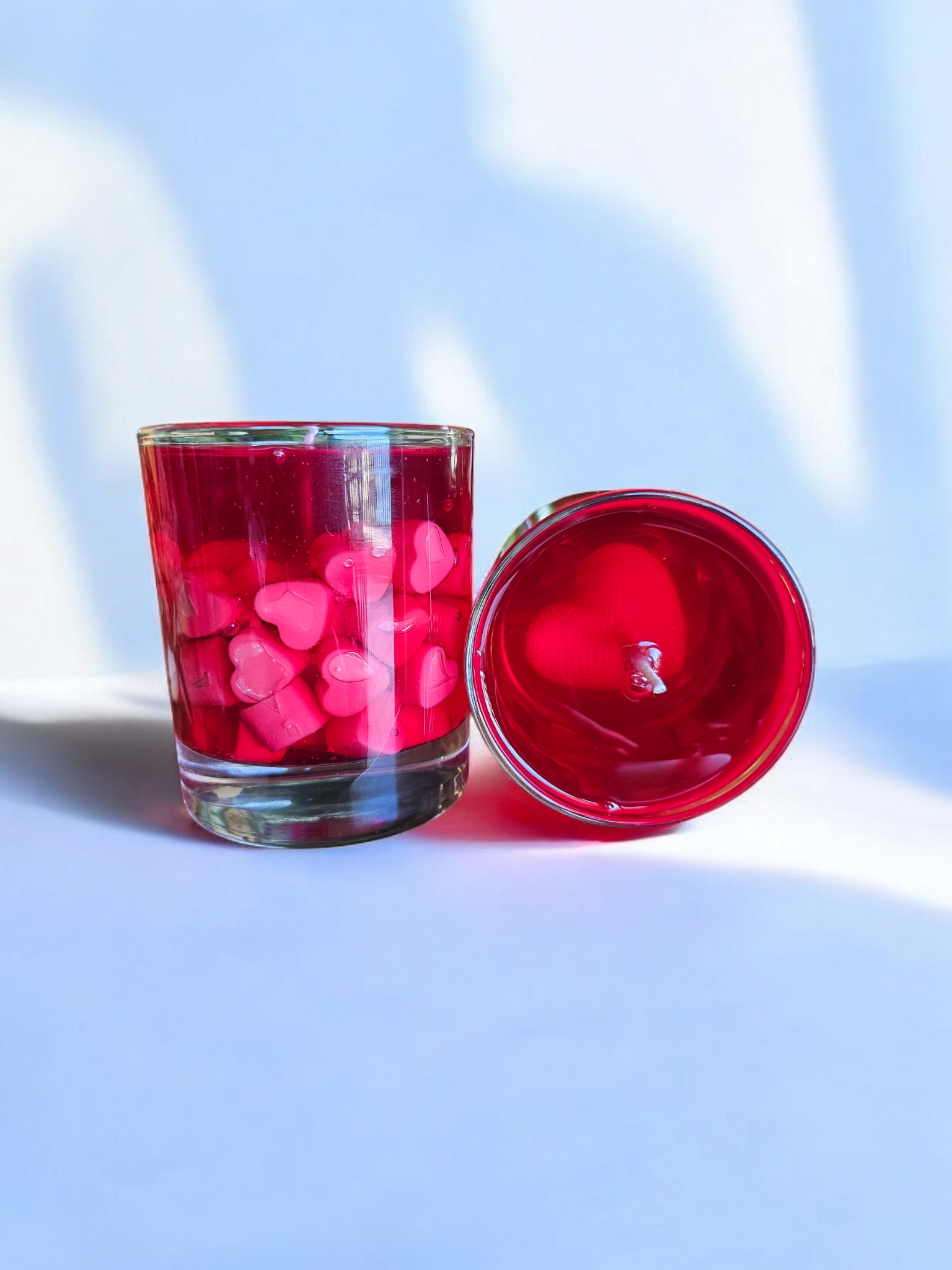 2. Red Gel Candle with Large Heart: A striking red gel candle with a bold heart centerpiece, ideal for expressing love.