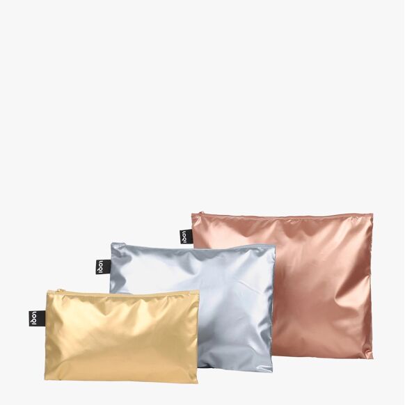 Metallic Gold, Silver, Rose Toiletry Bag Set
