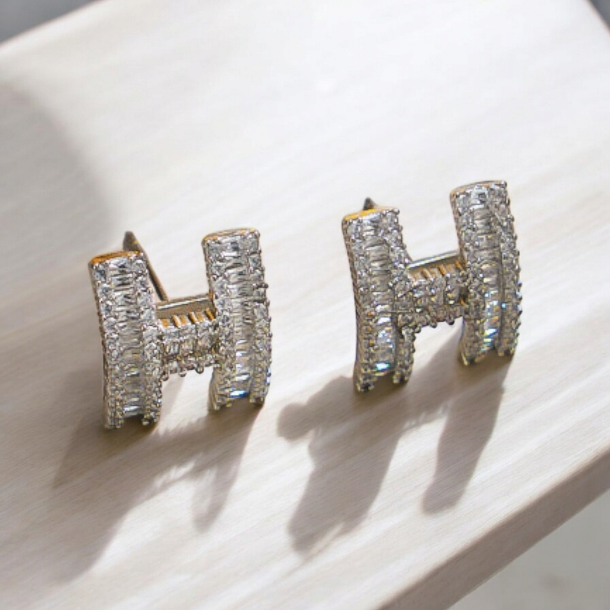 A chic "H" letter earrings adorned with sparkling zircon stones, set on a delicate chain. Perfect for adding a touch of elegance or gifting with a personal touch.