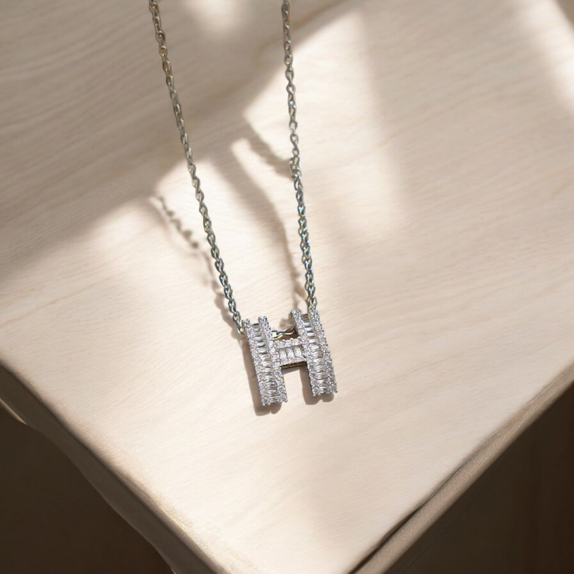 A chic "H" letter necklace adorned with sparkling zircon stones, set on a delicate chain. Perfect for adding a touch of elegance or gifting with a personal touch.