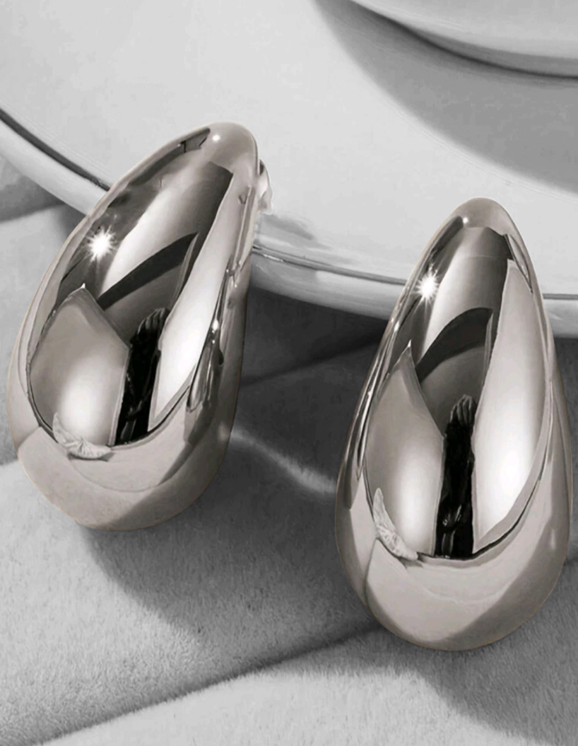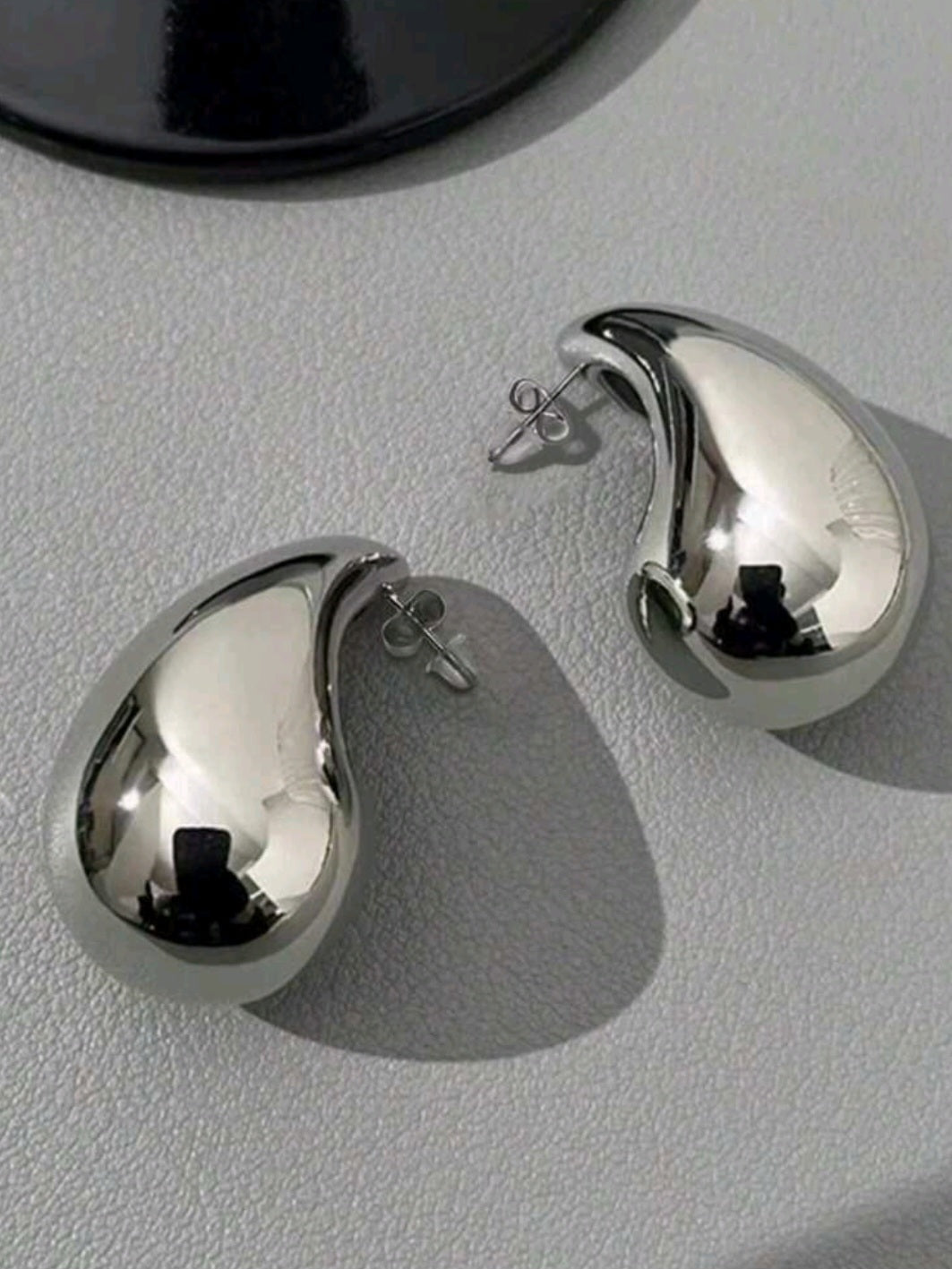 These elegant large drop earrings are made of copper with a sleek silver finish.