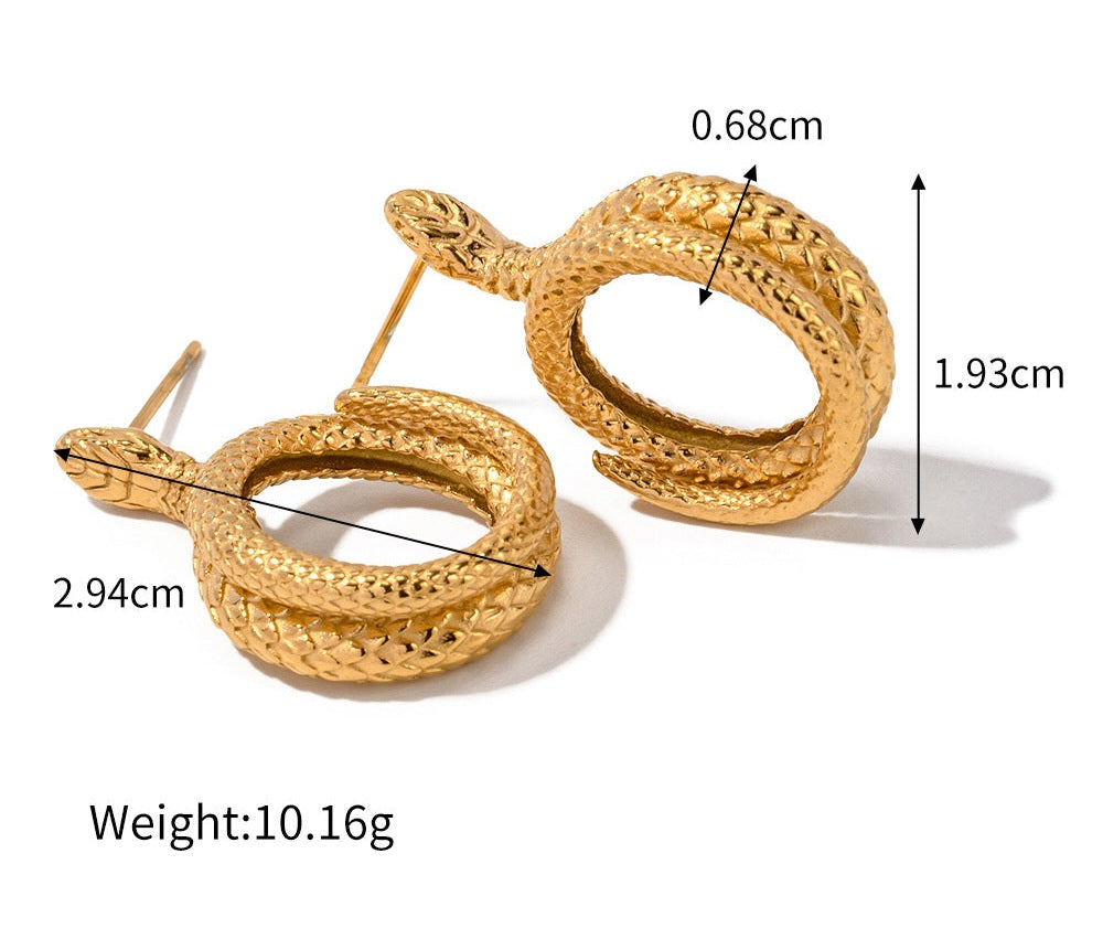 A stylish snake-shaped stainless steel earring, durable, hypoallergenic, and perfect for a bold, modern look.